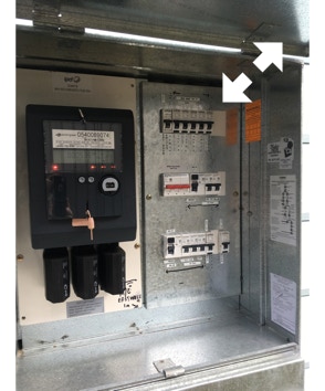 Meter Box before Anything Electric refurbishment